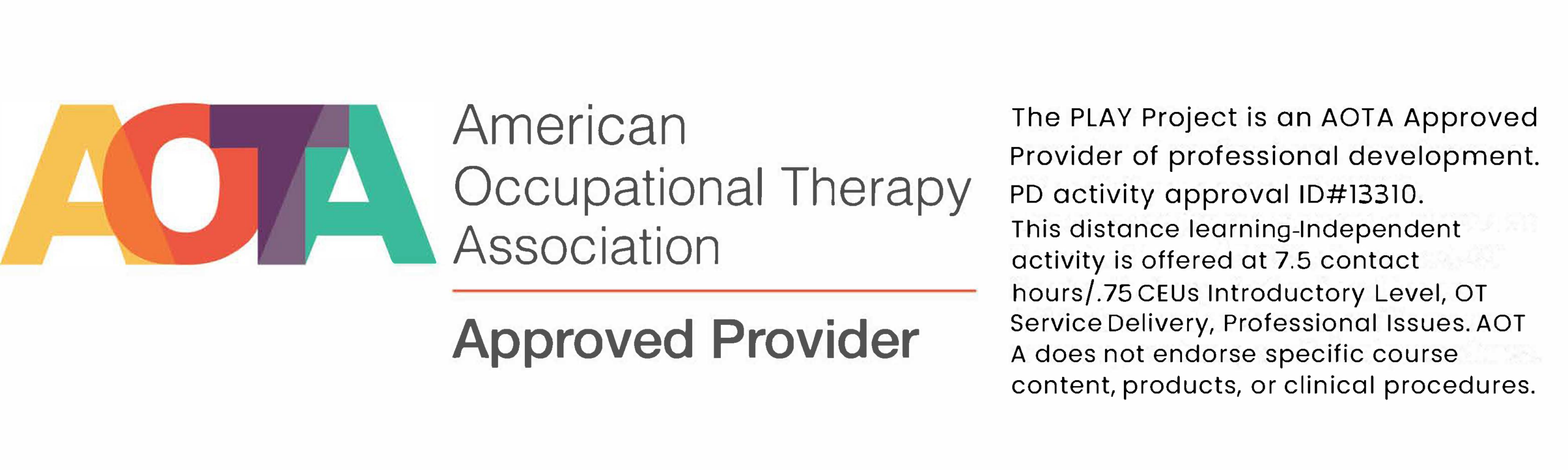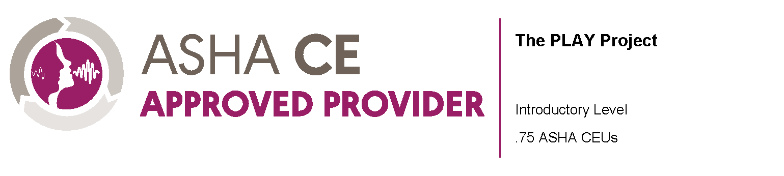 Level 1 – Foundations of PLAY Course is approved for ASHA CEUs, AOTA CEUs and Illinois Early Intervention Credits approval pending.